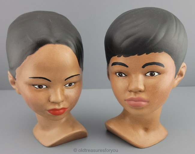This pair was homemade from a Holland Mold in 1966; the Cybis heads were introduced in 1963. The Holland mold is 7” h which is the same height as the actual Cybis heads (their overall height was almost 10 inches, including the ~3” high wood base upon which they were mounted).