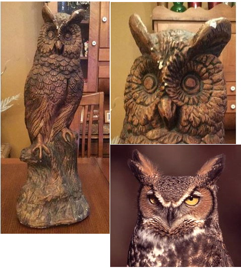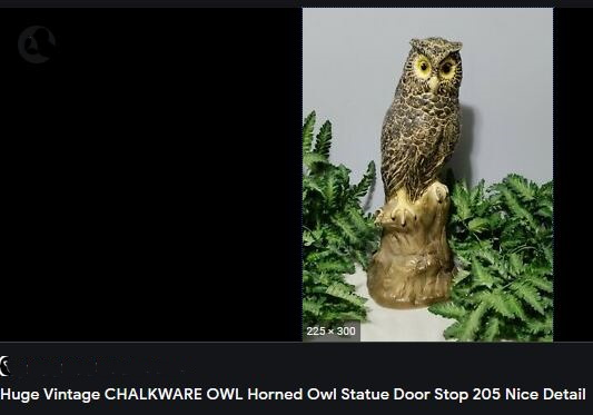 The presence of ‘chalkware’ in the caption prompted another search, this time for ‘large chalkware owl.’ Lo and behold….