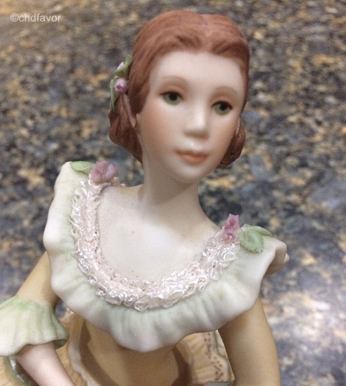 Kitri was issued in 1986 as a non-limited edition and is probably the third in the Clara–Swanilda-(Kitri) trio; she is 6” high and was $550 in 1988. This ballerina is from Don Quixote; her Spanish costume causes her to be occasionally misidentified by online sellers as named “Carmen” ….an entirely different Cybis piece that is shown in the Music and Opera post.