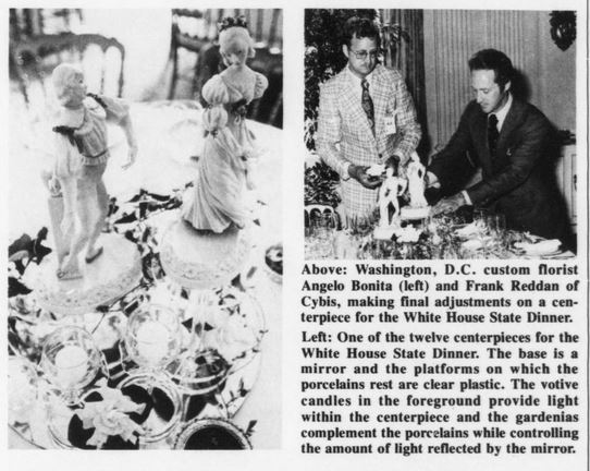 Ira Jacobson, owner of Brielle China and Galleries, has received a letter of appreciation from the White House for his help in the solution of a unique problem. He participated in a search for 12 pairs of sculptures, originally created at the Cybis Porcelain Studio of Trenton, to decorate the tables at the first full White House State Dinner of the Carter Administration, June 28. Honored on the occasion were Venezuelan President and Mrs. Carlos Andres Perez. The White House had approached Cybis with their theme for the decorations, the ballet. From the Cybis ballet collection they selected the figures of Princess Aurora and Prince Florimund, [the] principal roles in the classic ballet “Sleeping Beauty,” to be used as the table centerpieces. The problem was that the porcelains are from a “retired” collection, and finding private lenders was an enormous task for the White House staff. According to Jacobson, who was called on by Cybis to assist in locating the pieces, “I was delighted to be called upon to represent Cybis in America by adding my part to the White House table decor.”
