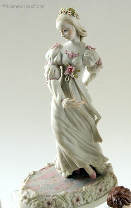 Romeo and Juliet, a limited edition of 300 introduced in 1985, is 14.5” high. Their introductory price was $2200 which rose to $2850 by 1988. The edition was completed by 1993. (The third photo is of an artist’s proof in darker colors and with a pink bow and added flowers.)