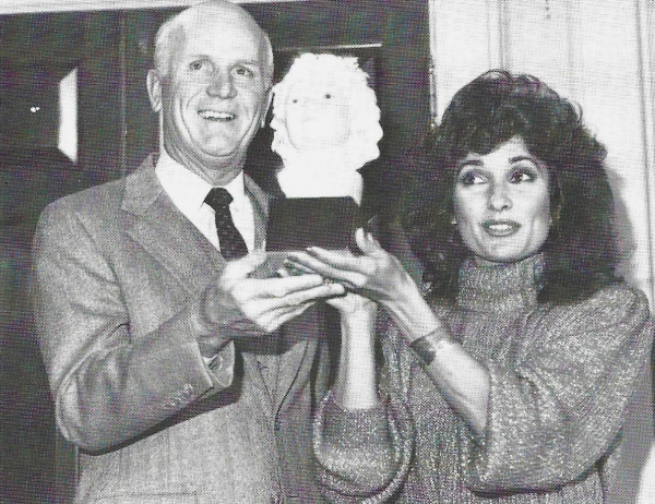 Joseph Chorlton presents a Robin to Susan Lucci when the actress was honored by the March of Dimes during the 1980s.