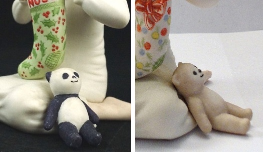 The 1980 Holiday Child is accompanied by a stuffed panda, which was repainted for the 1981 version as a teddy bear.