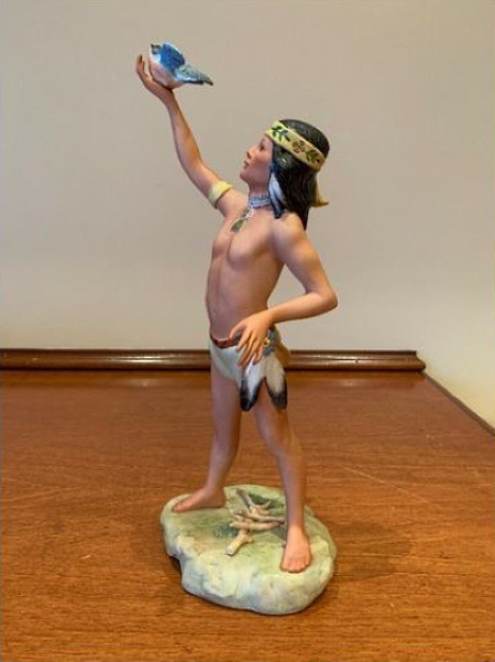 Young Brave is 13.5” high and does not have a wood base. This was a limited issue of 750 in 1987 at $725. On the 1993 price list it is listed as Indian Boy, Young Brave. This is another design whose full edition never came remotely close to being completed; I have never seen one for sale with a number higher than the low 40s. The bird is only glued onto the boy’s hand and so it is unfortunately easy for it to break off.