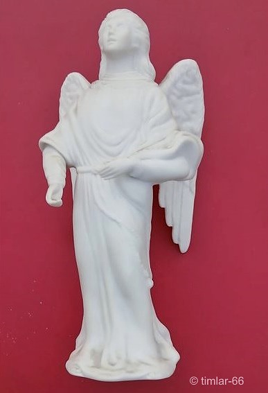 Little Angel, who was originally issued in Spring 1987 at $125 as part of the “Children to Cherish Collection” and was retired within two years, eventually showed up in the Nativity Collection during the early 2000s under the exact same name, so this again is a resurrection of a retired piece with an extra color option. She appeared on Cybis’ circa-2000s website as a Nativity piece at $395 for color (the original issue’s blue dress) or white/gold and is 7” high. Just like Benjamin and Muffy/Fluffy, the original Little Angel was never intended as a nativity piece but was arbitrarily added to the series in a desperate attempt to entice existing Nativity Series collectors to purchase yet another piece. The gold accents on the upper inside part of her wings is the same style as the early-2000s Guardian Angel and was probably done by the same person at the same time.