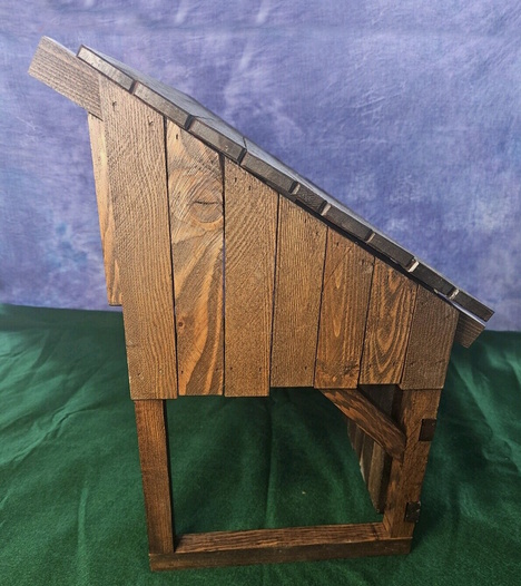 This item was shipped as multiple components to be assembled according to instructions. The photos above show the front, side, and rear views of a correctly-assembled Stable. Many thanks to the helpful Archive reader who alerted me to the fact that the only photo that I previously included here (other than the Cybis literature itself) was of a Stable that was not assembled properly!