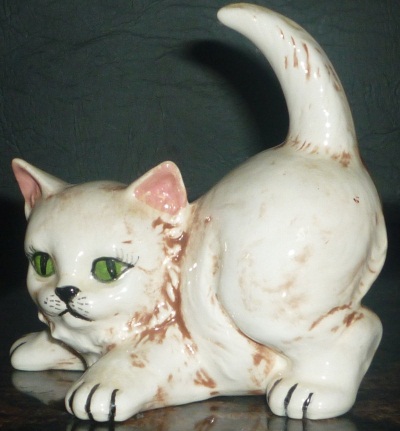 Cats and dogs were both represented in porcelain by Cybis, although less than a dozen designs were created in either category. The majority of those sculptures were produced by the modern (post-1960) studio although there are earlier examples. In fact, there are two feline designs dating from the Cordey era (1940s-early 1950s).