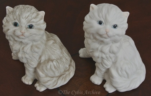 The earliest cat that I have found bearing only a Cybis mark dates from the 1950s. All of the Cybis cats, except one, were non-limited editions. They were also all domestic cats; the studio never made any of the “big cats” such as tigers or lions for retail sale (there is a prototype Lion in the Menagerie post that was never released.)