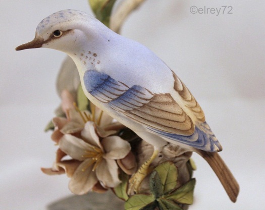 The first/earliest pieces were mounted on a wood base. It’s is possible that this is the same wood base that was used a couple of years later for the Goldfinch and and the Wood Wren with Dogwood. The base was eventually discontinued for both of those, but it seems to have disappeared from the Vireo first.
