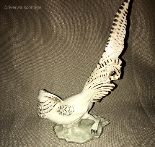 The top image is an artist depiction of an actual Golden Pheasant, followed by Boehm’s porcelain interpretation of that bird. Needless to say, the Cybis version has used more “artistic license” (if this bird was indeed what was meant, rather than an extremely fancy chicken!)