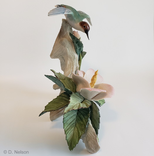 Here is the piece if positioned horizontally. The firing hole is now hidden, and the bird is also approaching the flower in the natural way. Which orientation do you like better? I have to say, it’s kind of nice to be given a choice in the matter!