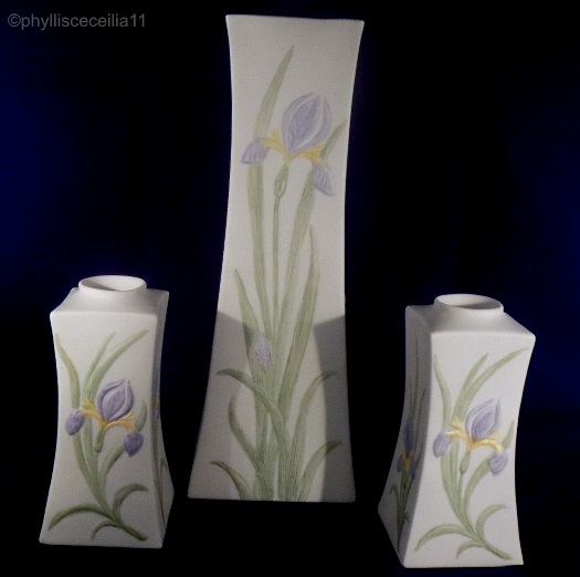 Here they are with the matching vase, giving a good idea of their relative sizes.