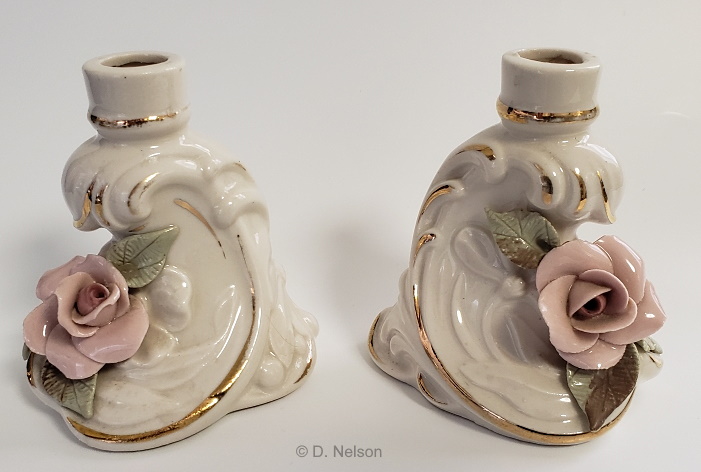Cybis sculpture hand made candle holders in pastels. From $1.75 the pair to $12.50 each.