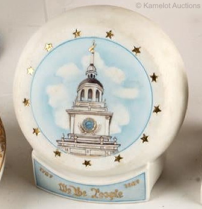 The We the People paperweight would have been issued as part of the studio’s 1987 Constitution Bicentennial offerings. It shows the US Capitol building.
