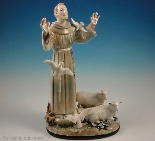 The ever-popular Saint Francis has at least three iterations and probably several more yet undiscovered. Saint Francis Xavier is 11.5″ high including all portions of the base. Retired before 1963.