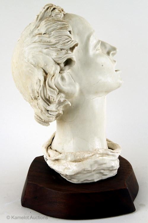 The earliest known Cybis depiction of a saint is this one, which Cybis in Retrospect cited as Head of Saint John from 1948, thirteen inches high and an “experimental one of a kind sculpture in glazed porcelain.” The black signature is not original to the bust. It was added during the 1990s or 2000s by the Chorlton studio.