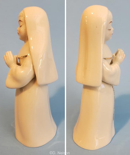 Her companion, the Singing Nun, has a raised design number 2010 underneath. This example is stamped Cybis Fine China.
