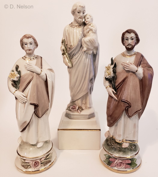 Here is a trio of Cybis figures of Saint Joseph, two from the same mold but the third quite different.