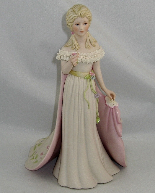 Fleurette was introduced in 1981 as a limited edition of 1000 at a price of $725; by 1988 she was retailing at $1075. She is 8.25″ high. The full intended edition may not have been completed; the highest numbered piece I have seen for sale to date has been #752.