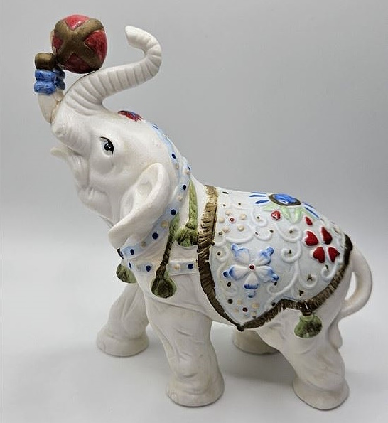 Here’s a shameless knockoff of Cybis’ 1975 circus elephant, Alexander ‘He’s the Greatest’….and with a broken/re-attached left tusk and right ear, to boot! The eBay seller of this item did describe it as a “replica.”