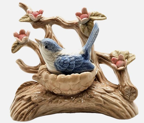 This is a really clunky attempt at copying the Wood Wren with Dogwood, but a knockoff nonetheless. A photo of the underside wasn’t provided, nor were any marks (or size) cited.