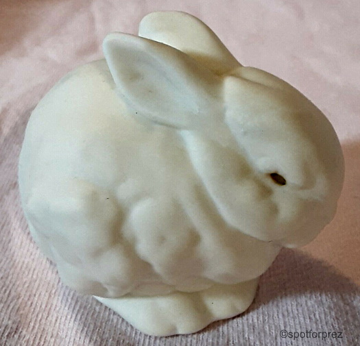 This knockoff is not a ceramic at all; it’s a candle! It is, of course, the iconic Mr. Snowball bunny from 1962, but here cast in beeswax. This is the only such example I have found, and I reached out to the seller to inquire if perhaps the mold was currently being sold commercially to candle and/or chocolate makers. Alas, it turns out that the mold was included in a liquidation sale of a former candlemaker several years ago and so it’s impossible to trace its source.