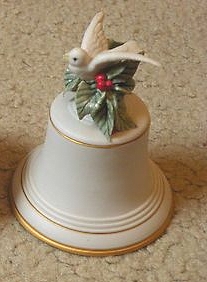 In addition to their 1990s series of Twelve Days of Christmas and four 1980s angel ornaments Cybis also produced several holiday themed porcelain bells. One series was designed as a tree ornament and the other series was not.
