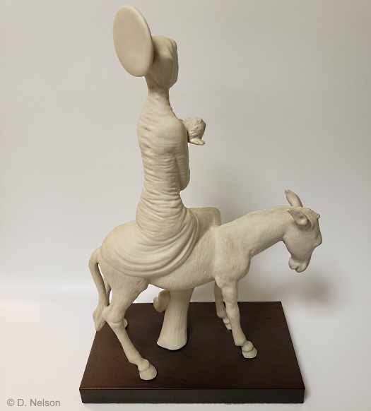 Flight Into Egypt is 13″ high and was offered in 1960 in white bisque only. It is attached to a wood base. This piece was priced at $175 throughout its production run of 50 pieces. The final piece shipped from Cybis in 1966. Special Note: I now have a list of what retailer originally received each one of these sculptures from Cybis. If you have one and would like to know who and when that was, I will be happy to look that up for you. There is a Contact Form link at the bottom of this page.