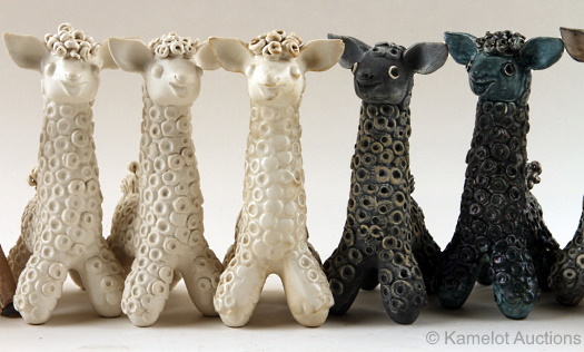 There was this glazed porcelain Large Llama at 14″ high, while the smaller version was described in Cybis in Retrospect as being a Sheep!! There was also a 9″ high Goat in a stained-glass finish.