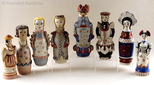 A group of folk toys was sold in 2019 during the studio’s liquidation. They are all about 14″-15″ high. Some have gummed Cybis stickers on them and some do not.