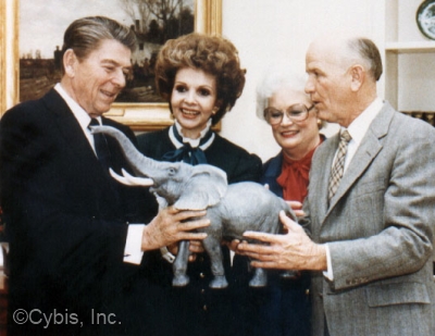 Reagan himself was presented with a Cybis Elephant, painted grey rather than white, in December 1982.