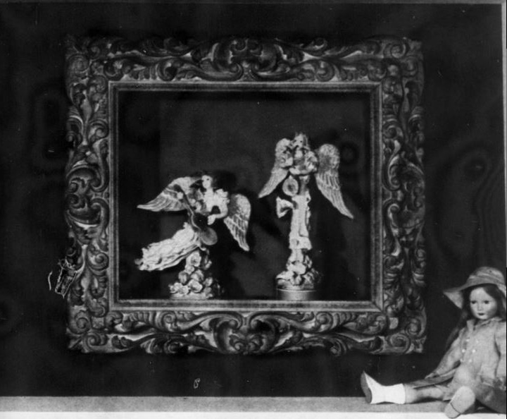 The widely-circulated magazine House & Garden included a photo of four angels, displayed in shadow boxes, in their 1941 holiday issue. They are the Violinist, Cellist, Guitarist, and French Horn player.