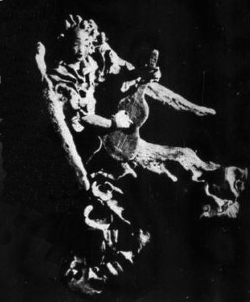 The only photo discovered so far of the Guitarist is the one that appeared in the 1941 magazine spread, so I have isolated and enlarged that section and removed the distracting background elements. Her unusual orientation almost looks as if she is flying backwards, causing her robe to flow out to the front or side (hard to tell from the angle shown.) Based on this photo, I think this is my favorite of the five styles; she looks as if she is really ‘rockin’ out’, doesn’t she? 😊 It would be fun to put her next to the saxophone…err, I mean French Horn… player for an angelic jam session!