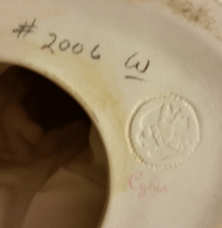 Numbers in the 200s are almost always teapots, coffeepots, sugar bowls, creamers, etc. Birds (other than the ubiquitous bird-in-a-tree) were in the 300s. The flat-backed wall-mounted ‘lady faces’ have numbers in the 900s. “People” molds – busts, torsos, and full figures – are numbered in the 3000, 4000, and 5000 range with the majority falling into the 4000-5000s category. This makes sense because the majority of Cordey molds were of this type.
