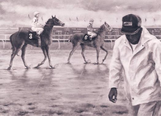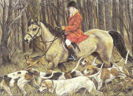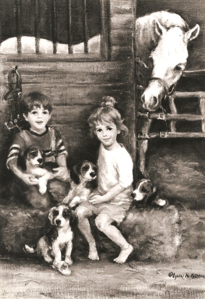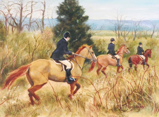 Porcelain sculpture is by no means Mrs. Brown’s only talent. She also has had a successful career as a painter, working in both oils and pastels, especially on wildlife and equestrian subjects. An avid horsewoman, both she and her husband Francis (“Brownie”) Brown were licensed thoroughbred horse trainers active on the NJ/PA circuit for almost 30 years and many of her paintings reflect the racing, show, and hunting life. A representative selection of her work is shown below. Please note that although some of the photos are in black and white, all of the original paintings were done in full color.