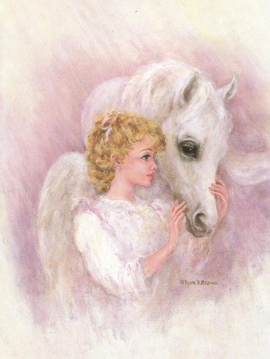 Several of Lynn’s paintings portray her two grandchildren, Ashley Michelle and Donovan Joshua. Tragically, both children perished in September 1993 in an early morning house fire. In a 1997 article for the Equine Art Guild, entitled “A Very Special Angel”, she describes how her grief over their deaths prompted her to begin a series of portraits of them. The portrait below was also produced as a blank greeting card with a portion of the sales proceeds going to benefit fire safety awareness.
