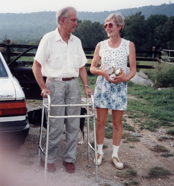Fellow-artist George Ivers visiting Lynn at her home/farm during the 1990s; he was diagnosed with Parkinson’s Disease in 1981 but continued to work at Cybis until 1986.