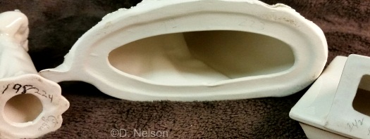 Cybis also “snatched” the baby from this mold and substituted it for the one supplied with a manger mold that they purchased from Holland Molds; see Body Snatching at Cybis for the comparison, if you’re curious.:-)