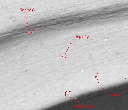 I have no idea why the paint-stamp has almost faded to nothingness over the past half century; perhaps it was stamped lightly to begin with, or perhaps someone once cleaned it too enthusiastically. But although a “ghostly” stamp, it is definitely there.