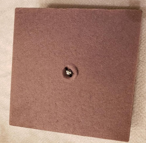 The “attached” bases typically were covered with grey felt on the underside at the final stage of assembly but in order to separate this Columbia from her base the owner needed to expose the original hole. The toggle bolt had to be carefully inserted into the underside of the sculpture before slowly allowing it to open.