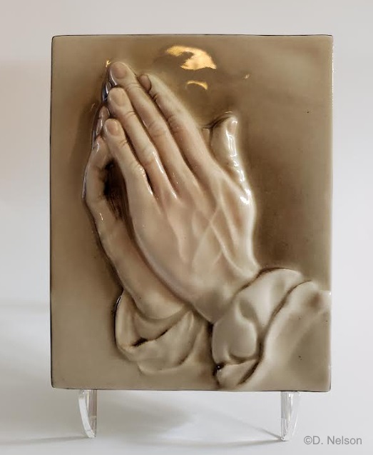 The Oremus Hands plaque is clearly a shoo-in to be Cypia. You can’t get much closer to a sepia-tone than this! As shown in the second photo, the outer edge of the plaque is black; this will become relevant as we look at more examples.