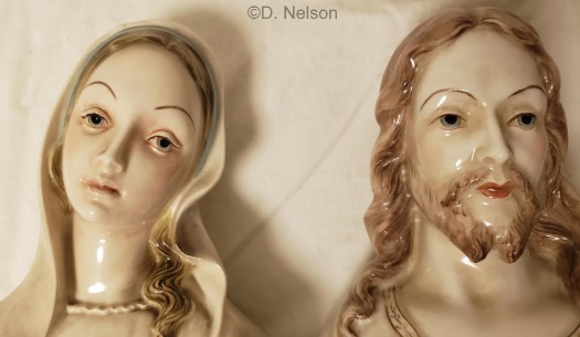 Just in case there was ever any doubt that this bust is indeed Cypia-toned, here she is between two definitely-Cypia, Cybis-signed Jesus and Mary busts.