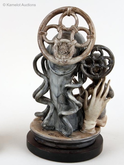 A similar design but this time with long hand-formed curls and only one hand – in a different position – instead of two. This is another piece that is in dire need of cleanup.