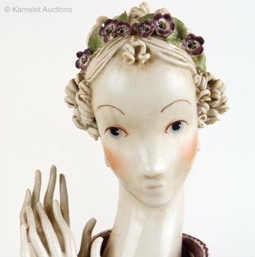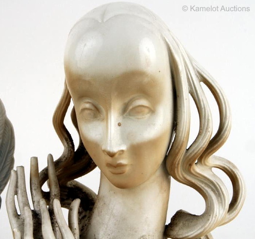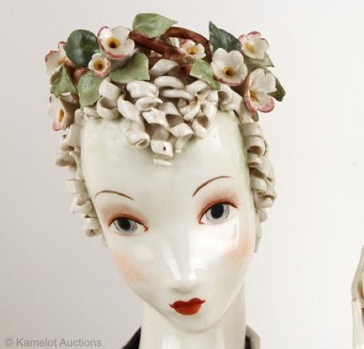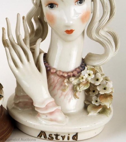 By the way, the practice of applying a name directly to the sculpture (as in Geneveive, Astrid, and the porcelain version of the angel bust Celestine) is something I have only encountered in these few circa-1940s busts. It was definitely not part of the studio’s “standard operating procedure” at any time after this!