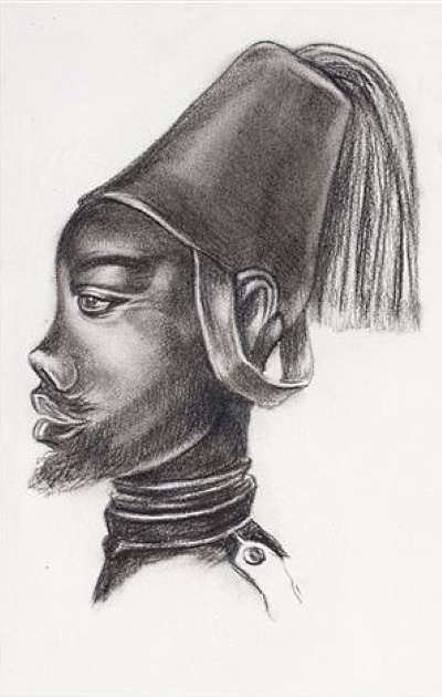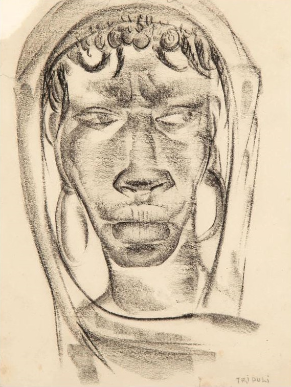Young black man’s head, 1930, charcoal on paper, approx. 10” x 8”. It is inscribed TRIPOLI at the lower right, which should settle the who/when/where question once and for all.