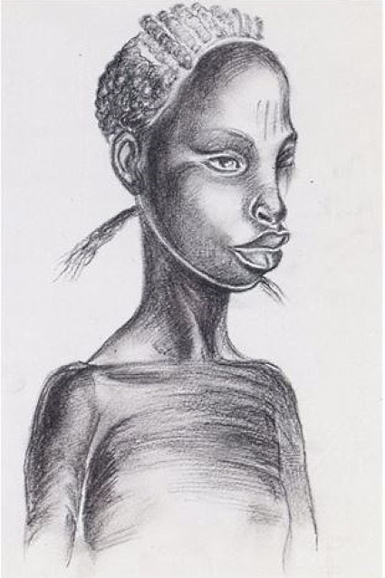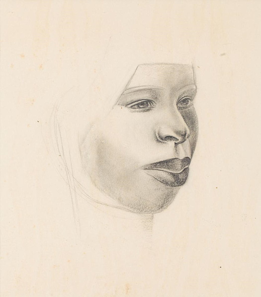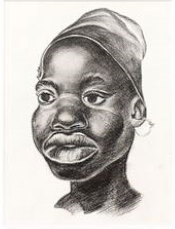 Young black girl’s head, 1930, charcoal on paper, 10” x 9”