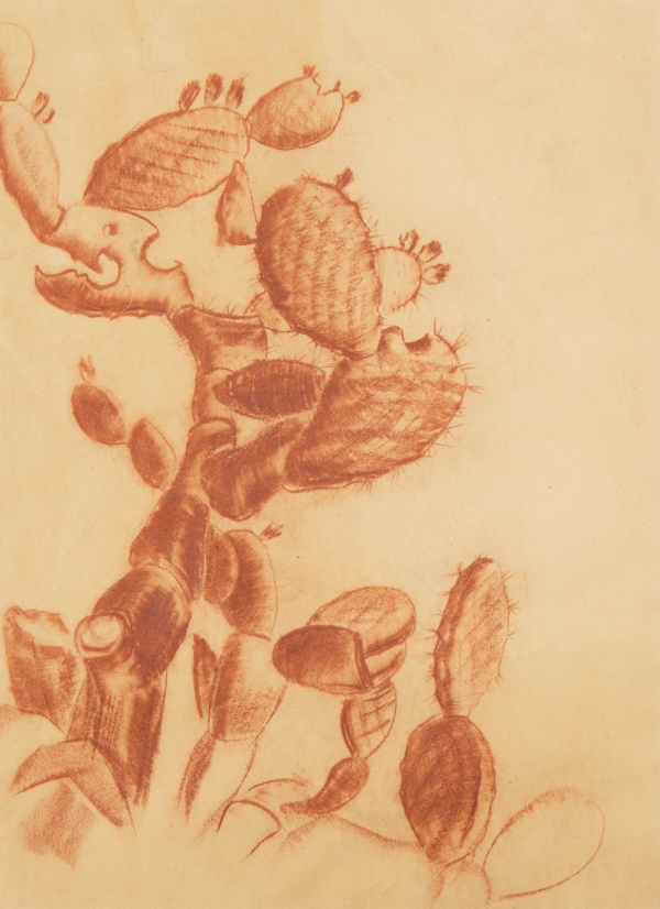 Cactus Plants, sanguine on paper, approx. 19” x 14”, ca. 1930