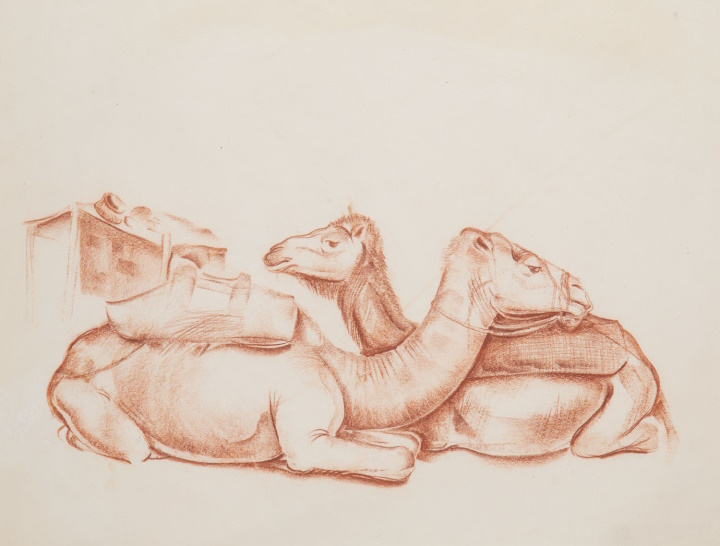 Camels, sanguine on paper, approx. 16” x 20”, ca. 1930