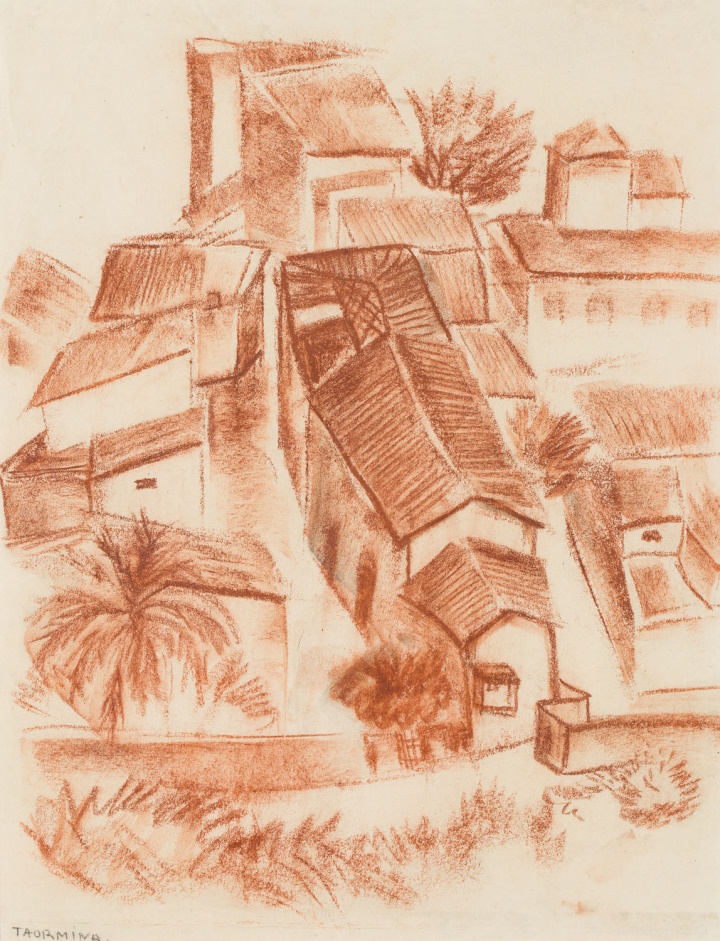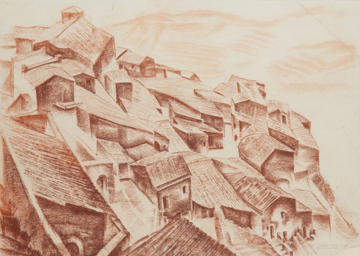Taormina, sanguine on paper, approx. 10” x 7.5” , ca. 1930