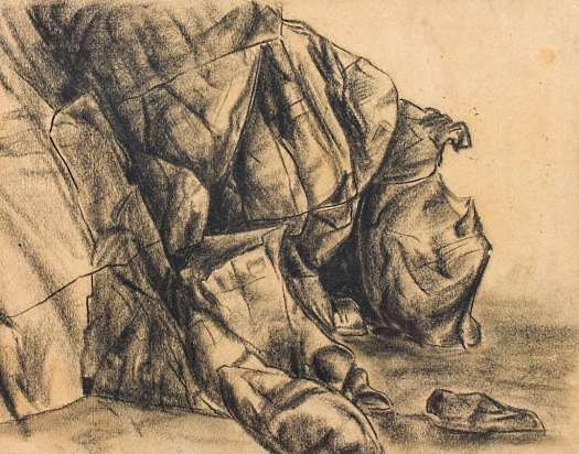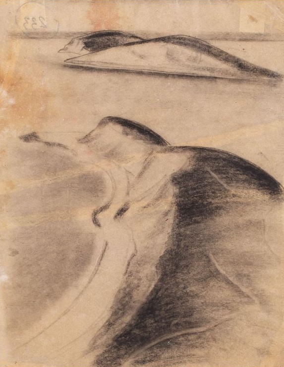 Coast in southern Italy, 1930. Carbon pencil, approx. 12” x 9”.